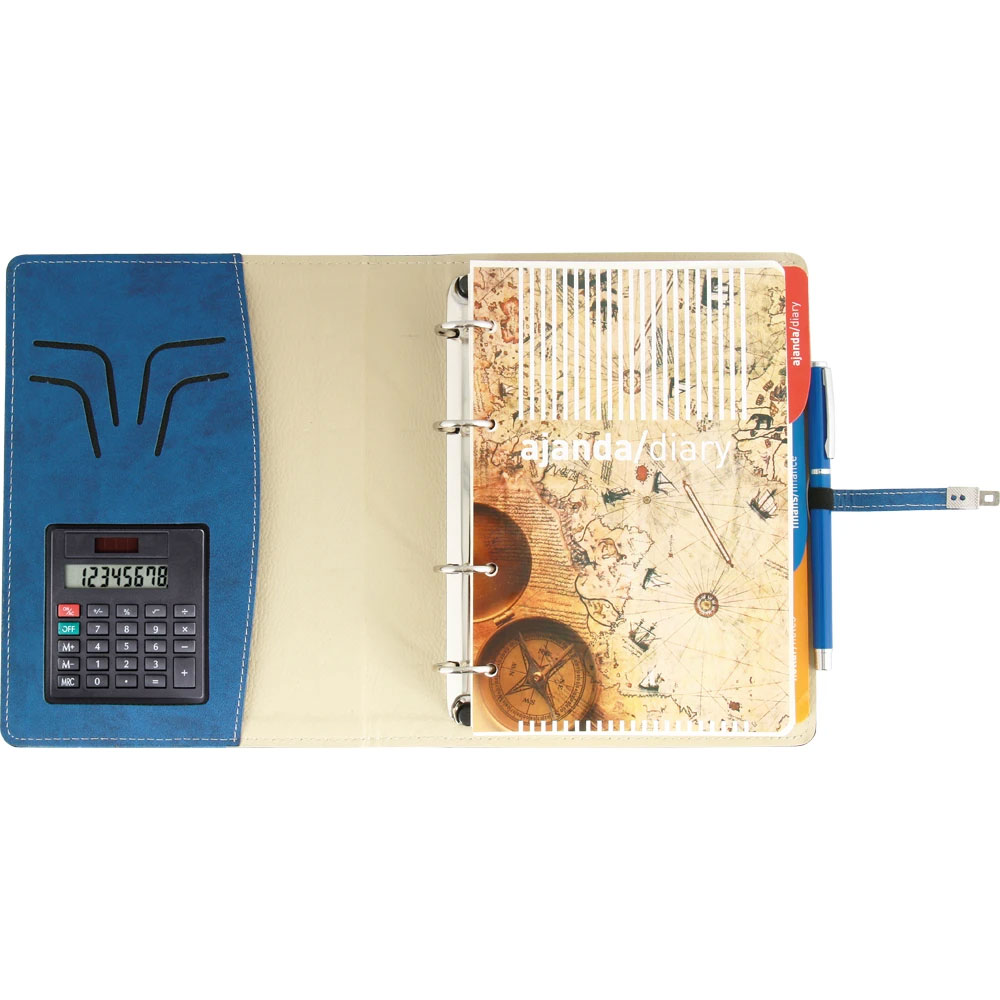 Deri: Termo Metal Toka: Var Hesap Makinası: Var Ebat: 18 x 23 cm Baskı: Gofre, Lazer Koli Adeti: 30 Ajanda Ebat: 15 x 21 cm Sayfa Sayısı: 352, Çizgili Kağıt: 70 gram krem